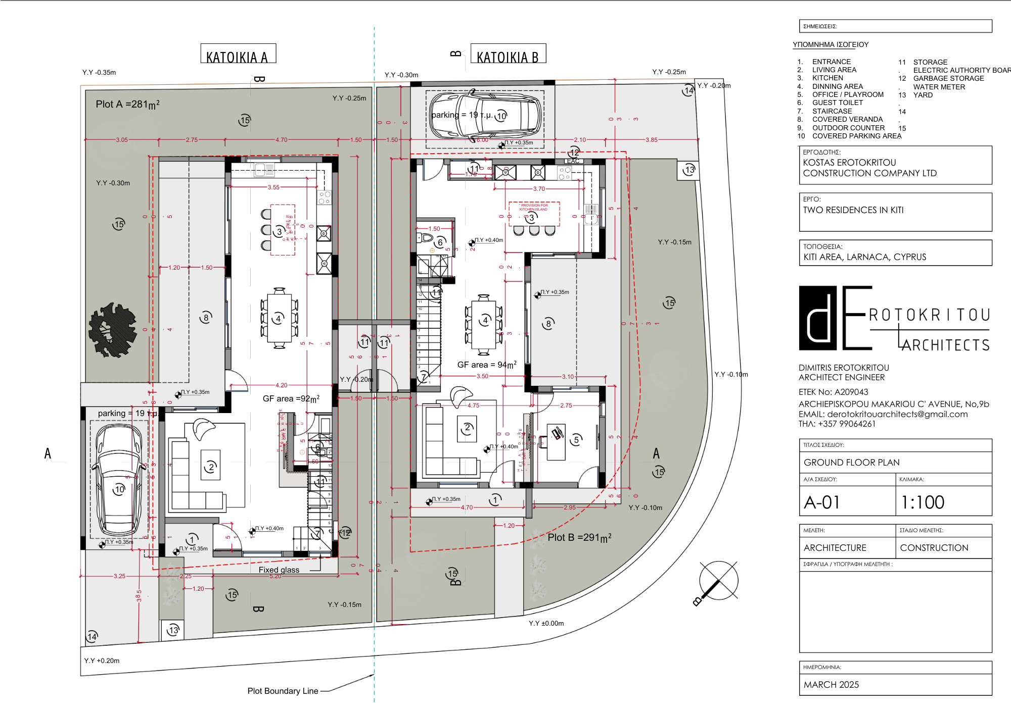 This exclusive residential project consists of two modern detached houses, designed with a contemporary architectural style that combines clean lines, elegance, and functionality. The homes are located in the peaceful residential area of Kiti, Larnaca, surrounded by quality houses and villas, offering a calm and family-friendly environment.